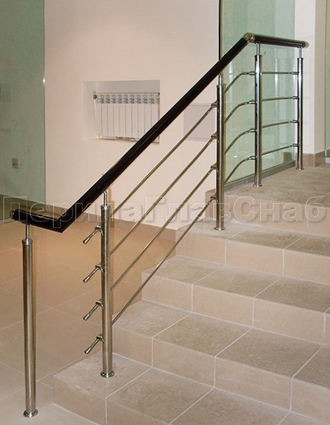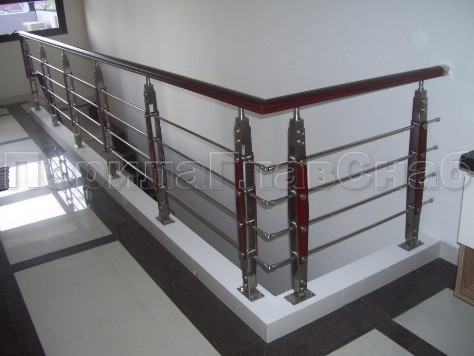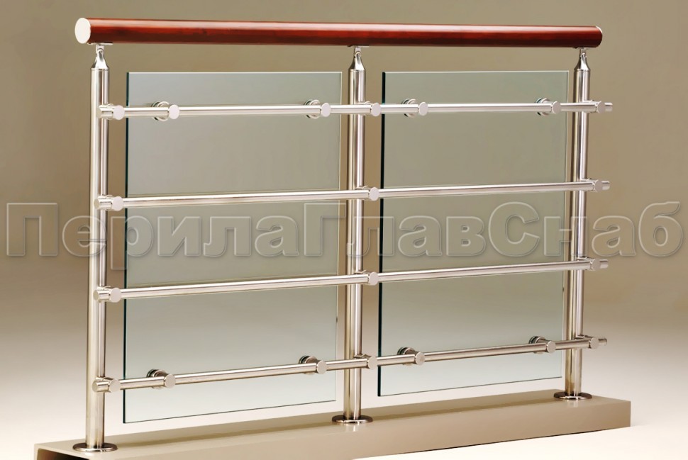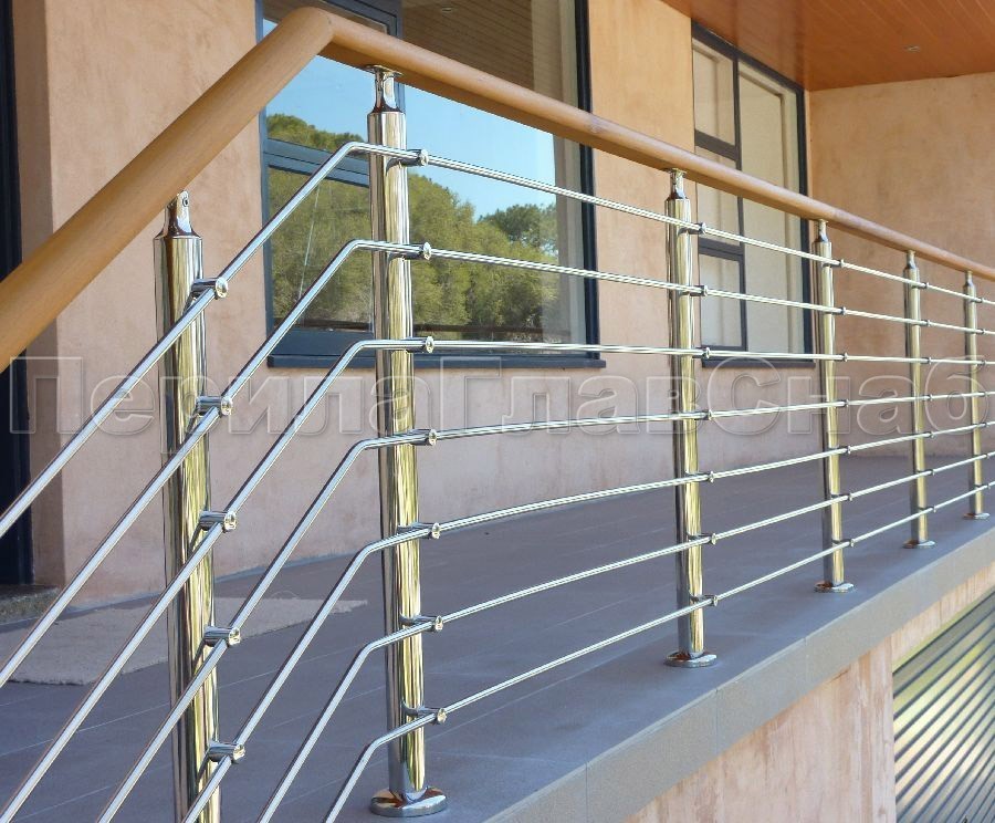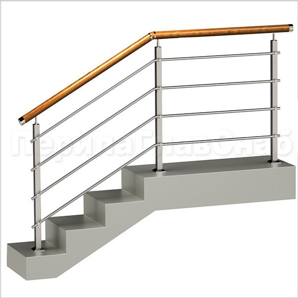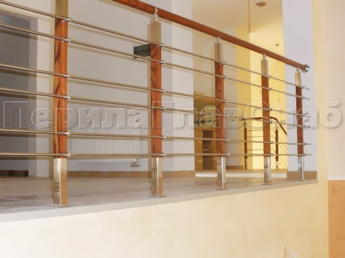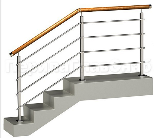 Записаться на встречу Четыре ригеля на держателях, круглый деревянный поручень и квадратные стойки