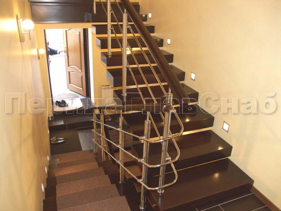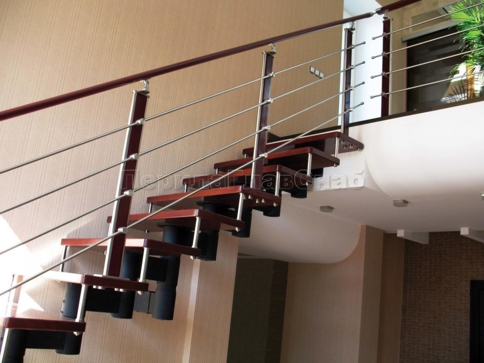 Ограждения с двумя стойками в каждую ступень с деревянным поручнем и без ригелей