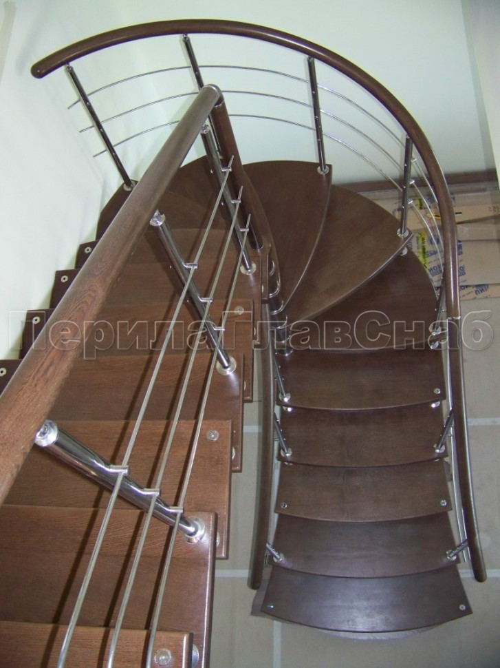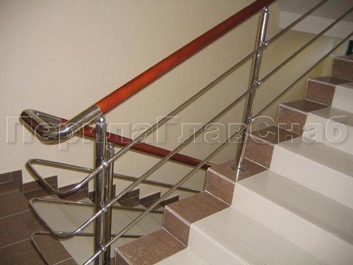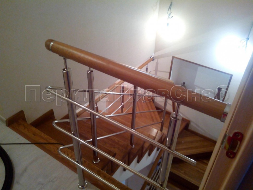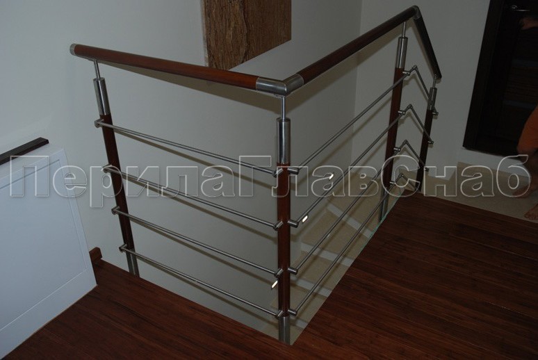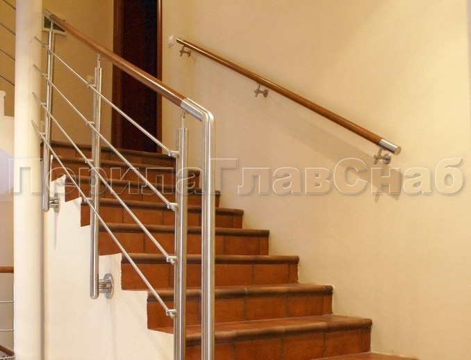 Нержавеющие ограждения без ригелей с круглым поручнем и стойками с деревянными вставками