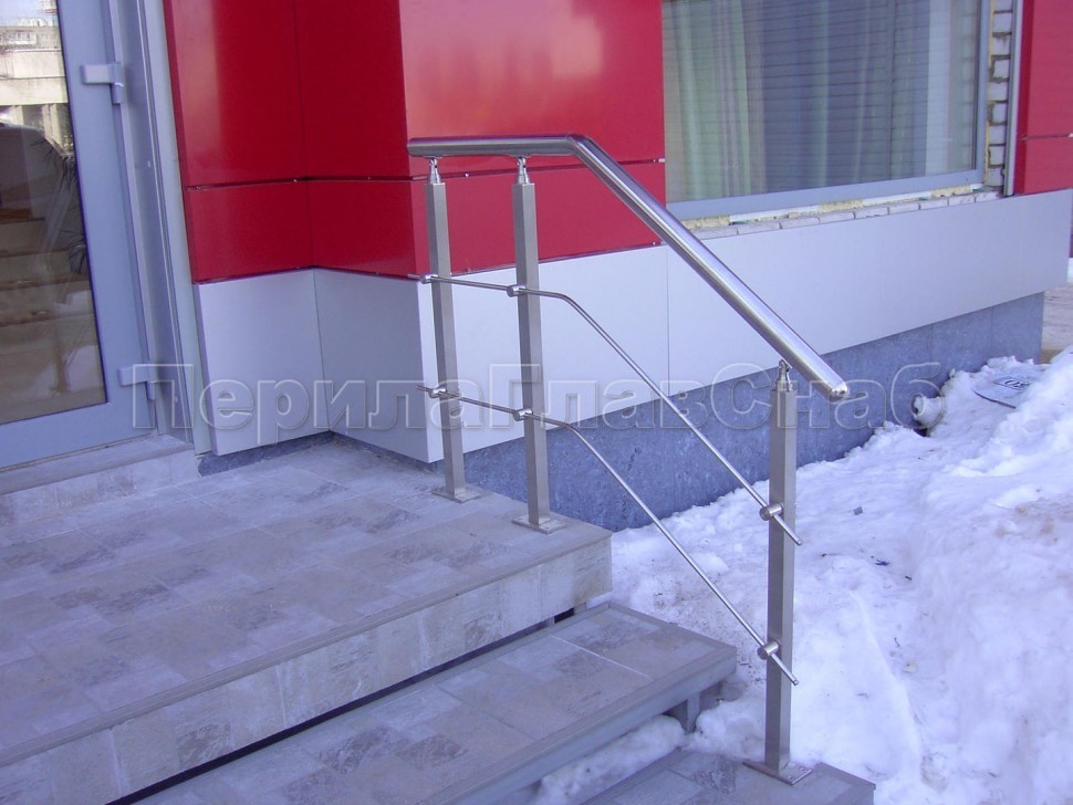 Четыре ригеля на сварке, круглый поручень и круглые стойки для крыльца