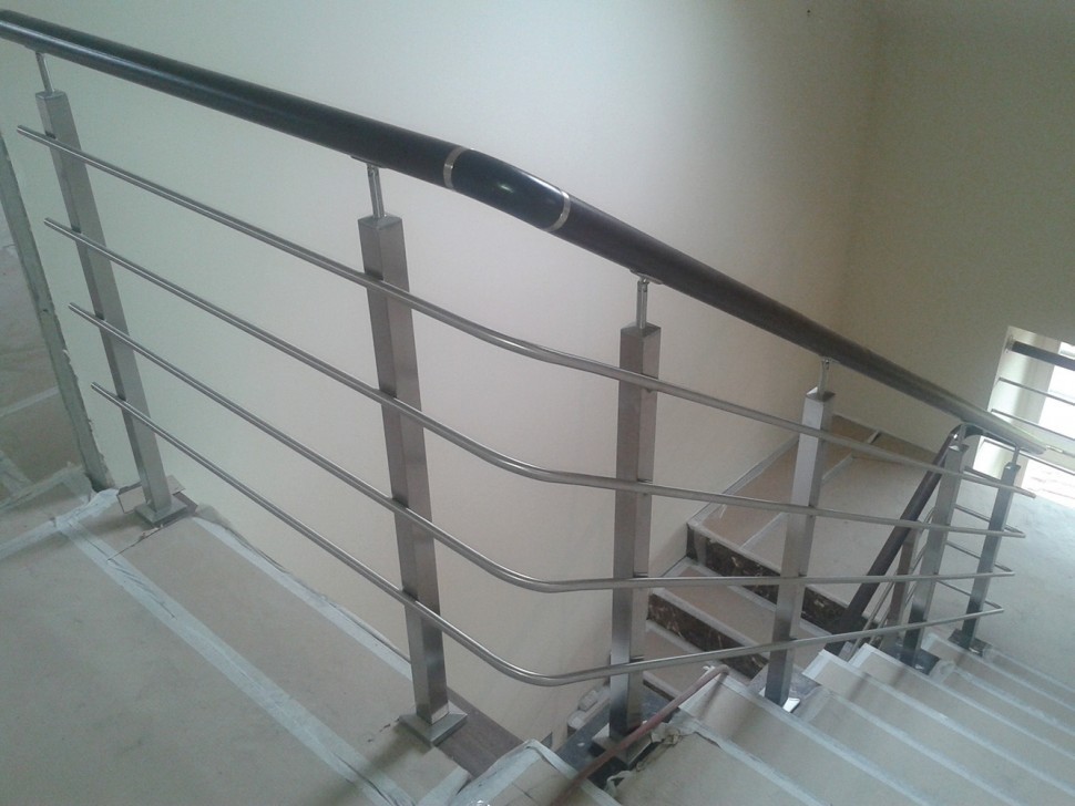 Четыре ригеля на сварке, квадратный поручень и круглые стойки