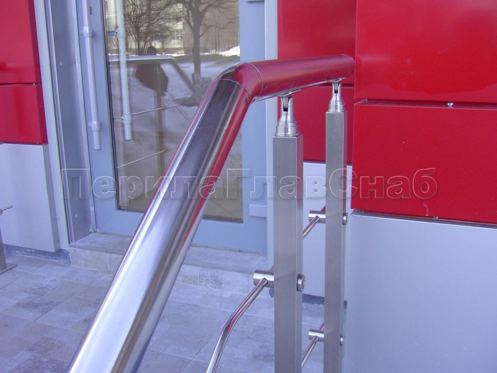 Четыре ригеля на держателях, круглый поручень и квадратные стойки
