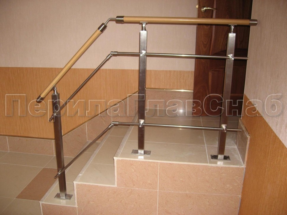 Ограждения с квадратным поручнем и дополнительным поручнем без ригелей