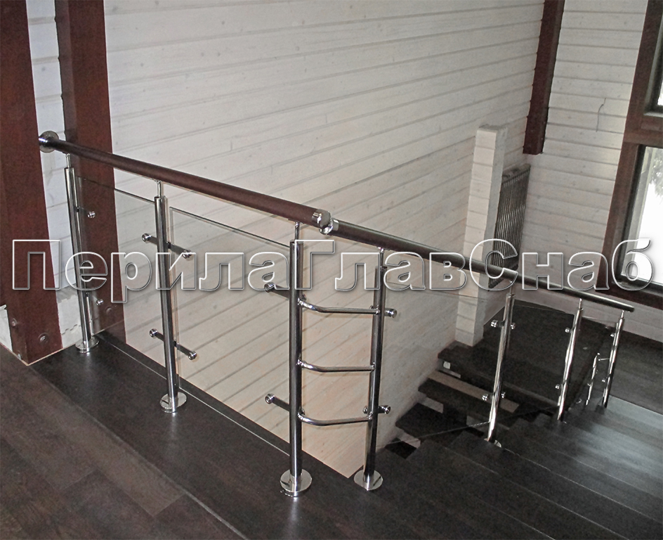 Нержавеющие ограждения без ригелей с деревянным поручнем в Омске. Готовые проекты ПерилаГлавСнаб