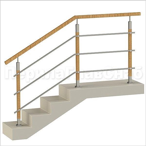 Два ригеля на сварке, квадратный деревянный поручень и круглые стойки