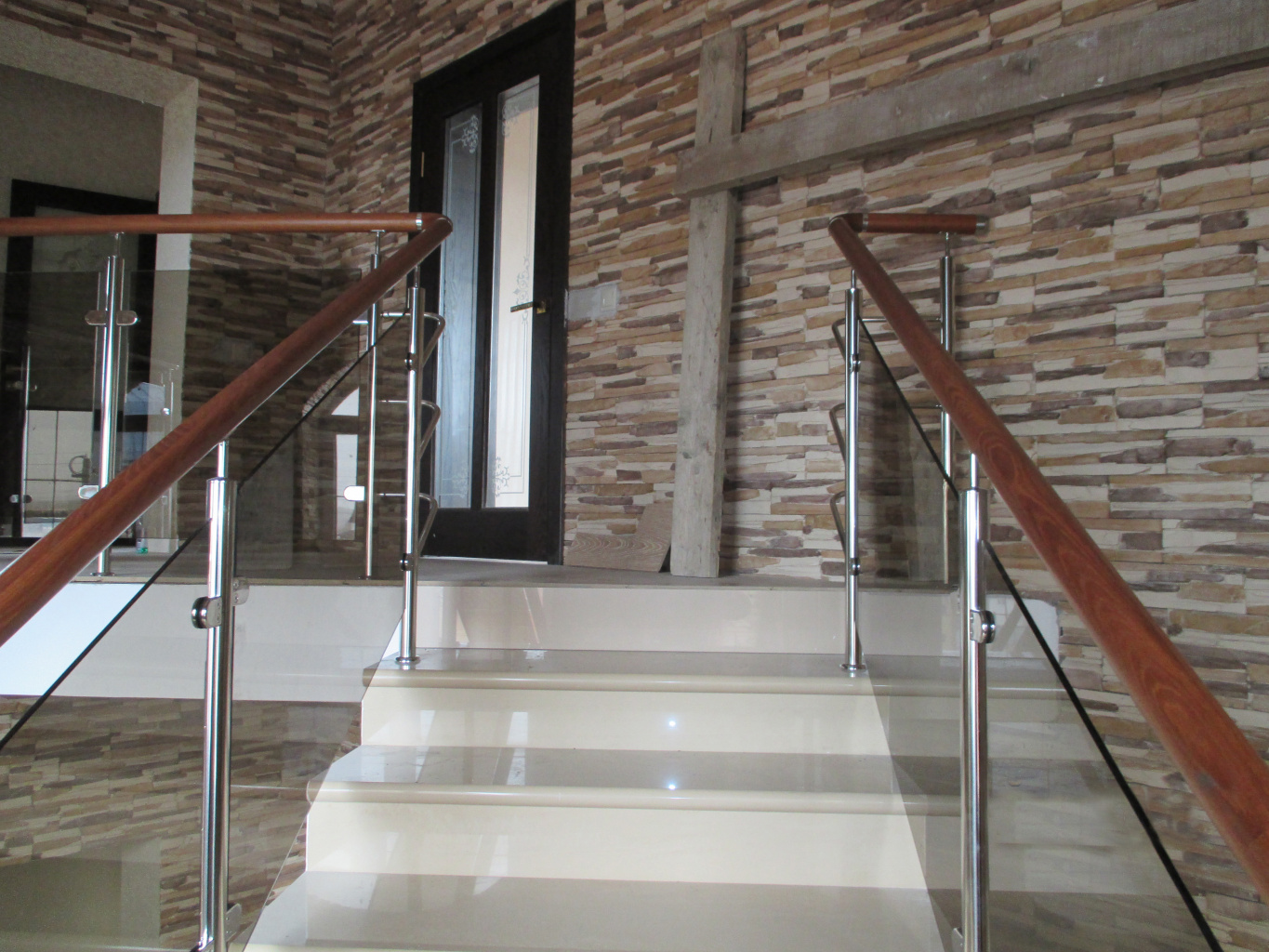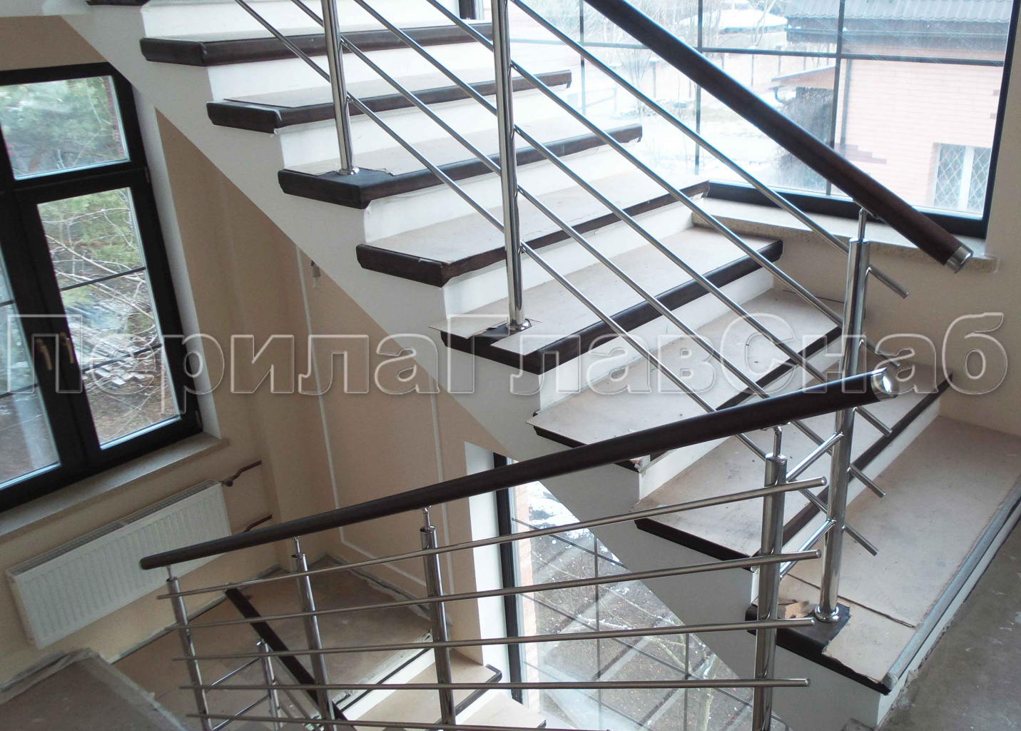 Нержавеющие ограждения без ригелей с деревянным поручнем в Омске. Готовые проекты ПерилаГлавСнаб - фото 1 Нержавеющие ограждения без ригелей с деревянным поручнем в Омске. Готовые проекты ПерилаГлавСнаб - фото 2