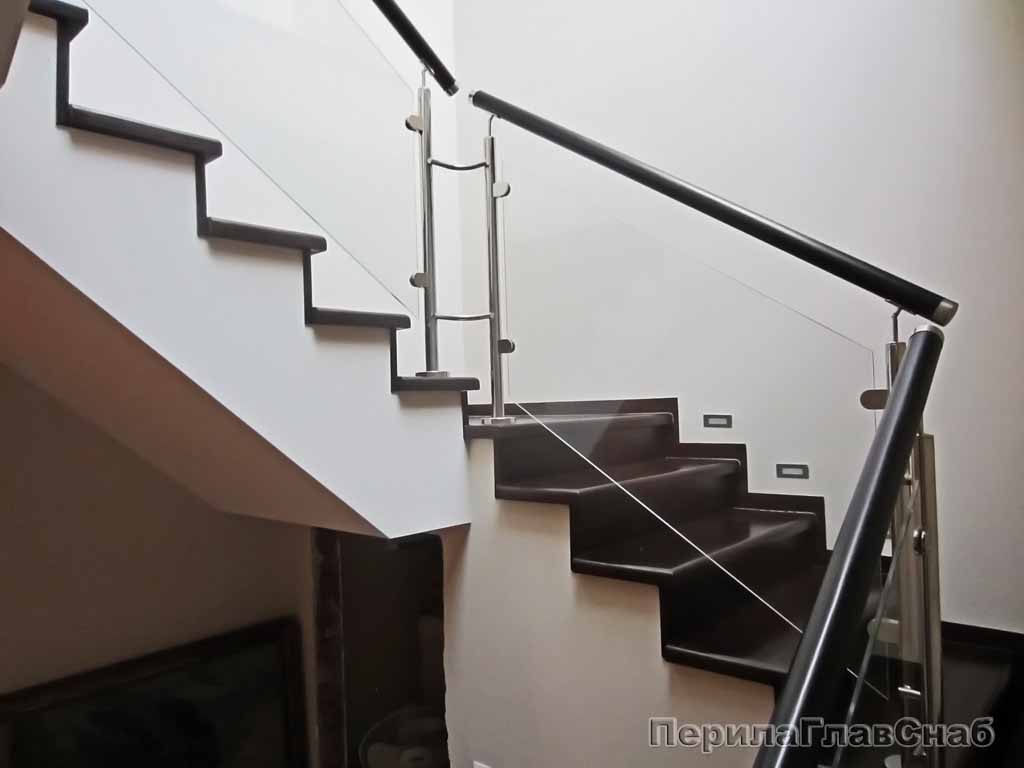 Нержавеющие ограждения без ригелей с квадратным деревянным поручнем в Омске. Готовые проекты ПерилаГлавСнаб - фото 1