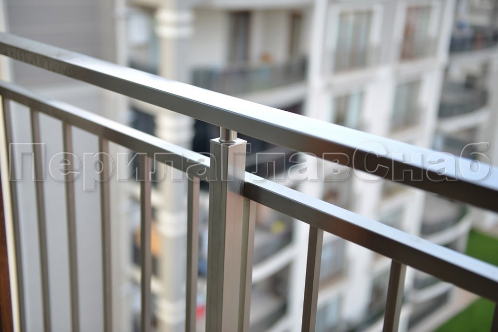 - В качестве поручня - перфорированная круглая труба 25 мм. Заполнение из вертикально зафиксированных нержавещих труб.