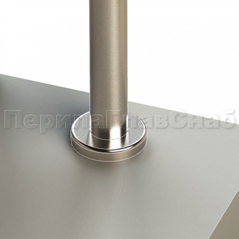 сдвоенный, из круглой нержавеющей трубы диаметром 38,1 мм. Нижний и верхний поручни завязаны при помощи отводов. Поручень может крепиться на выносные держатели.