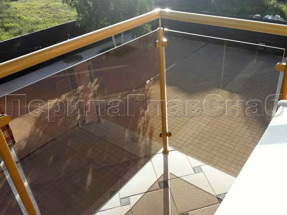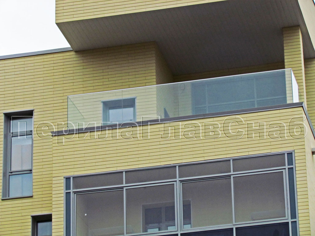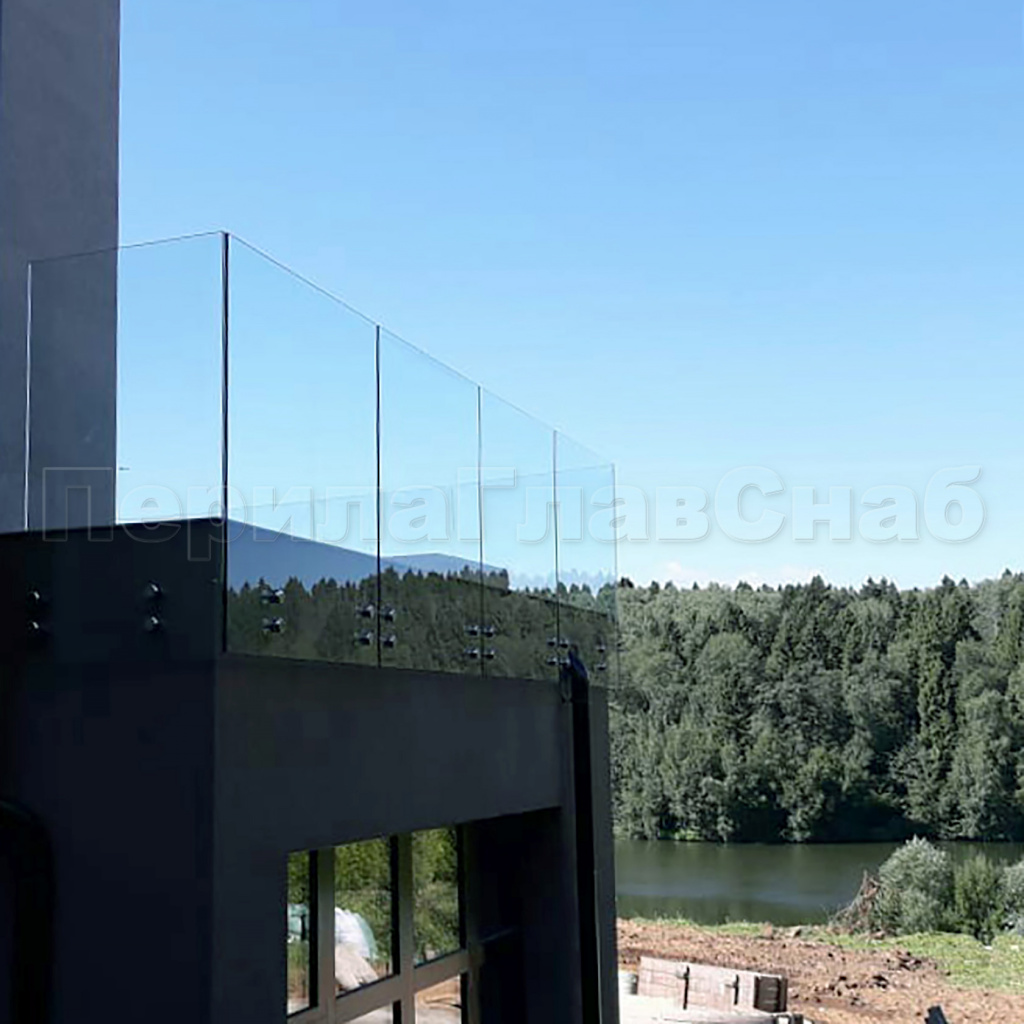 Цельностеклянные перила на балконе частного дома в Подмосковье