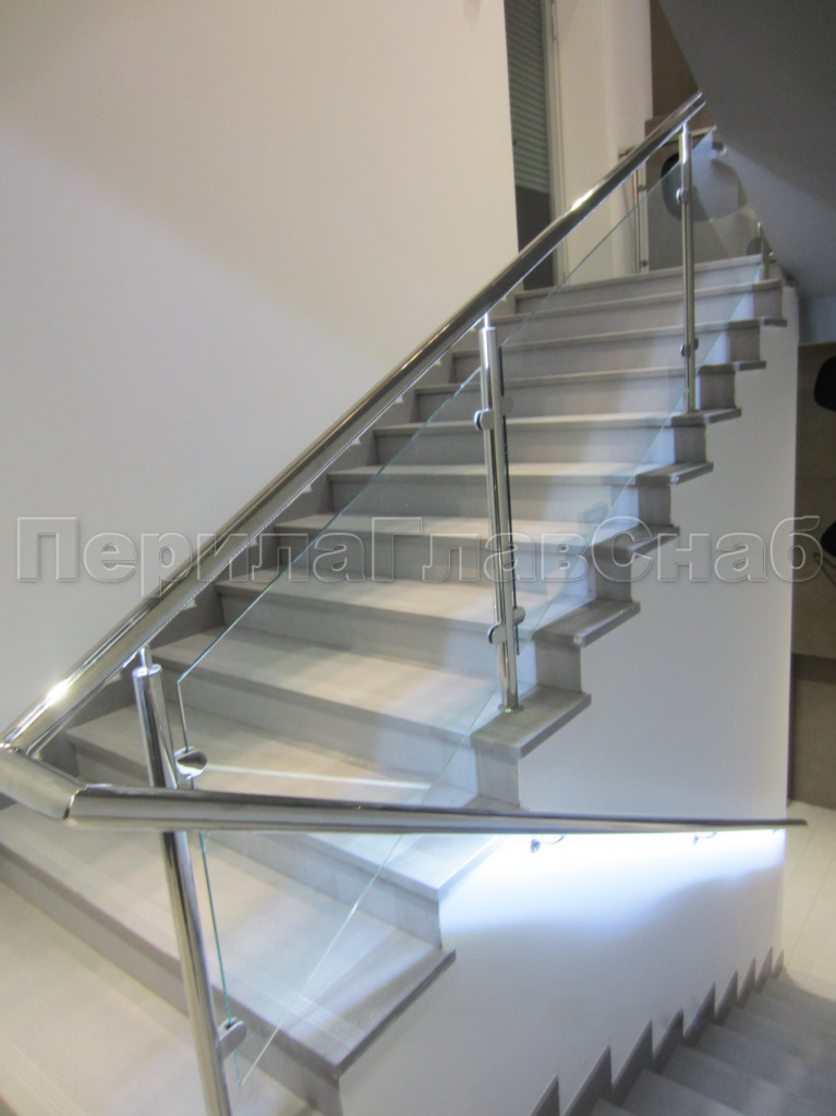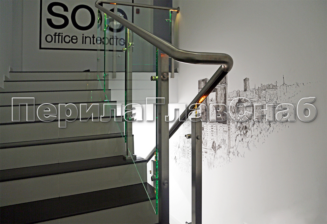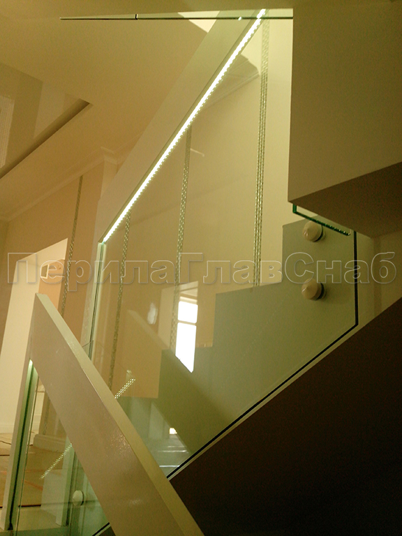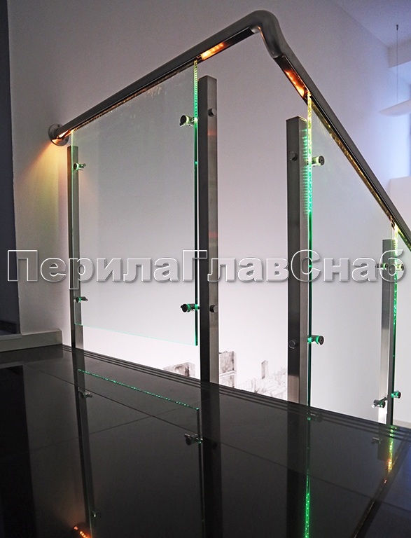 Ограждения лестниц на несущем стекле с подсветкой в Омске. Готовые проекты ПерилаГлавСнаб - фото 1 Ограждения лестниц на несущем стекле с подсветкой в Омске. Готовые проекты ПерилаГлавСнаб - фото 2