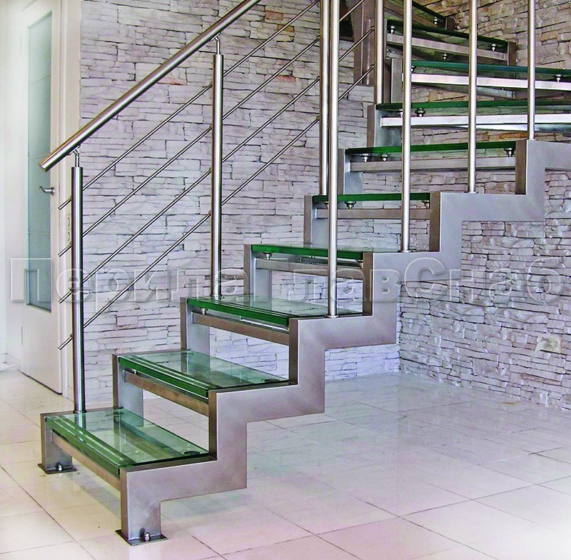 Ограждения с квадратным поручнем со стойками в каждую ступень без ригелей