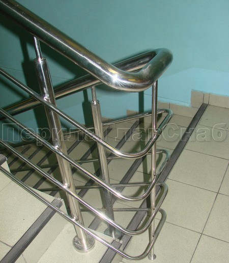 Четыре ригеля на сварке, квадратный поручень и круглые стойки