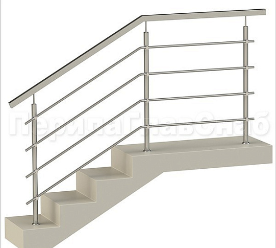 Четыре ригеля на держателях, круглый поручень и квадратные стойки