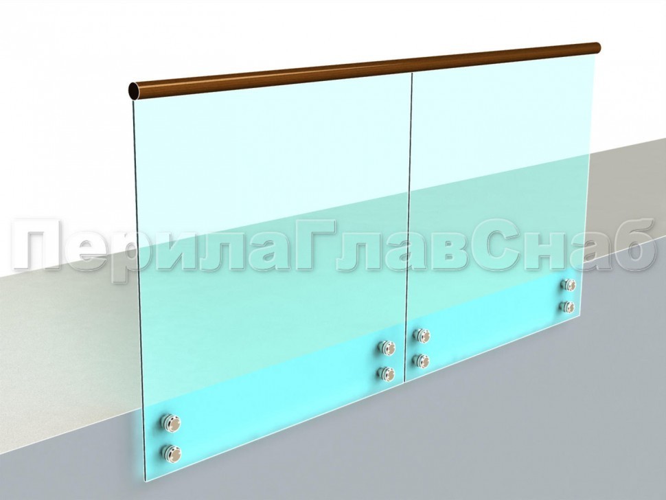 Ограждение с квадратным деревянным поручнем на точечном креплении
