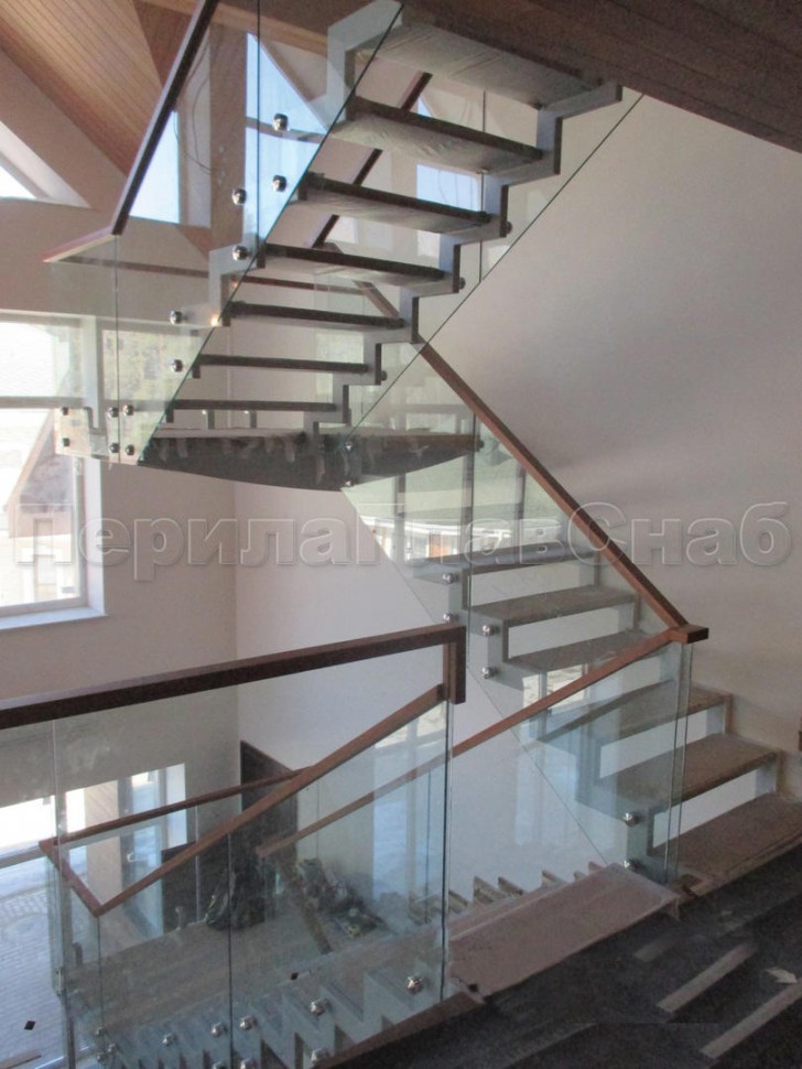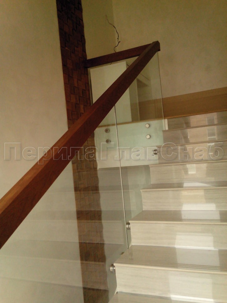 Записаться на встречу Ограждение с квадратным деревянным поручнем на точечном креплении
