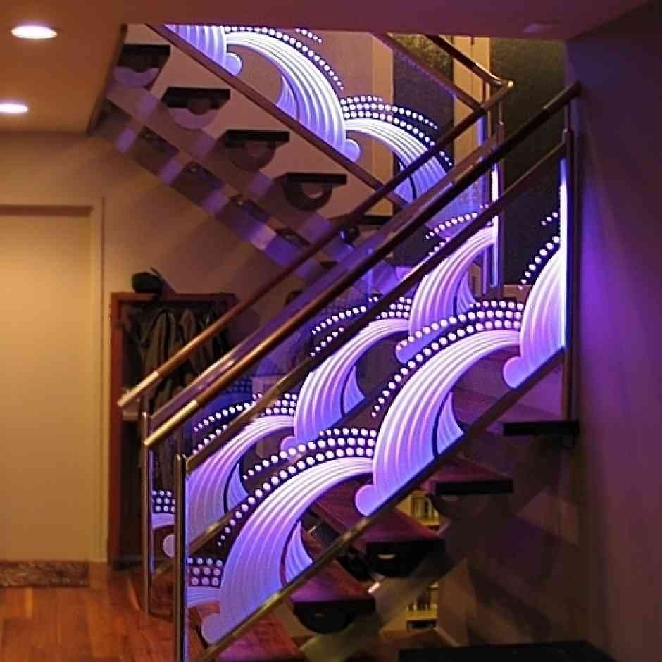 Ограждение с поручнем на выносе в зажимном профиле на лестнице