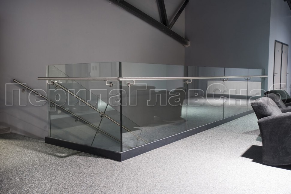 Записаться на встречу Ограждение с поручнем на выносе в зажимном профиле на лестнице