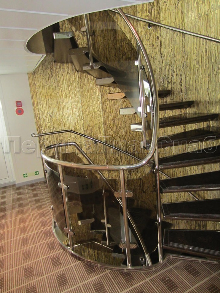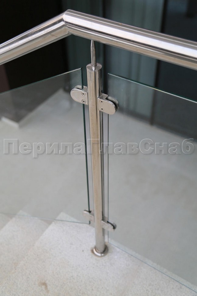 Ограждения лестницы без поручня с зажимными стеклодержателями и стойками