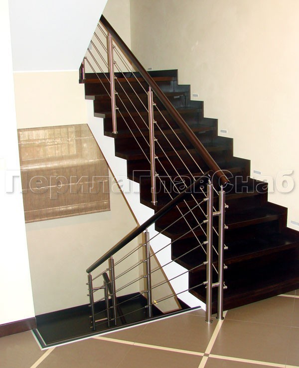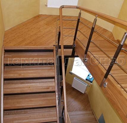 Ограждения с двумя стойками в каждую ступень с деревянным поручнем и без ригелей