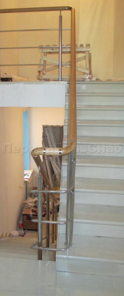Записаться на встречу Три ригеля на сварке, круглый деревянный поручень и круглые стойки