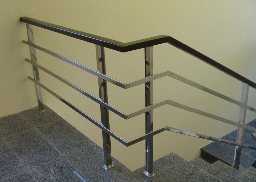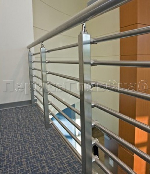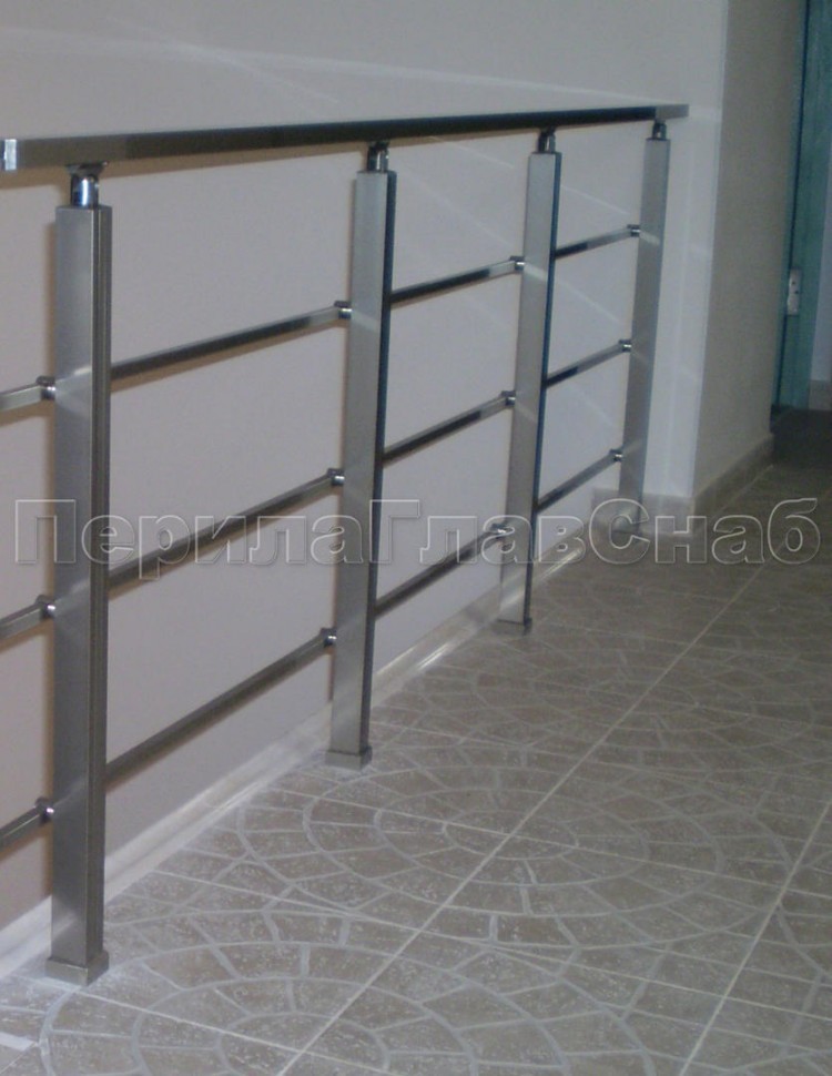 Записаться на встречу Три ригеля на держателях, квадратный поручень и круглые стойки