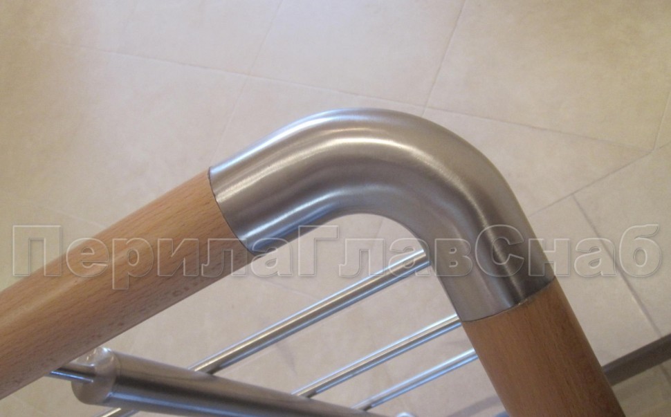 Нержавеющие ограждения без ригелей с круглым деревянным поручнем и стойками с деревянными вставками