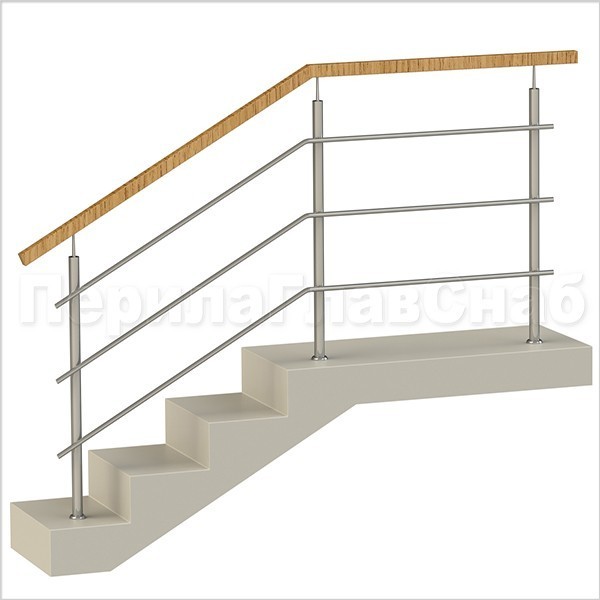 Три ригеля на сварке, квадратный деревянный поручень и круглые стойки