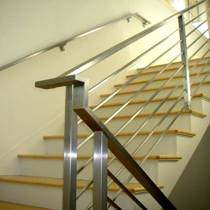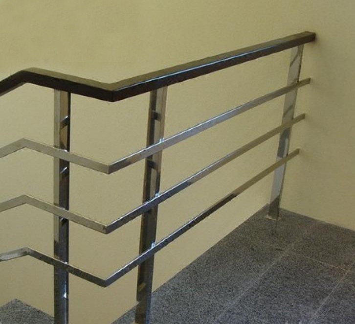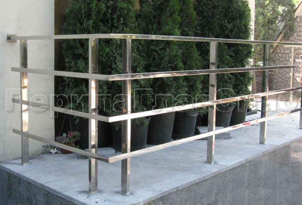 Четыре ригеля на сварке, круглый поручень и квадратные стойки