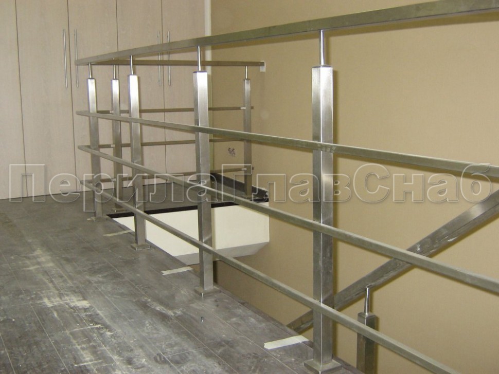 Четыре ригеля на держателях, квадратный поручень и квадратные стойки