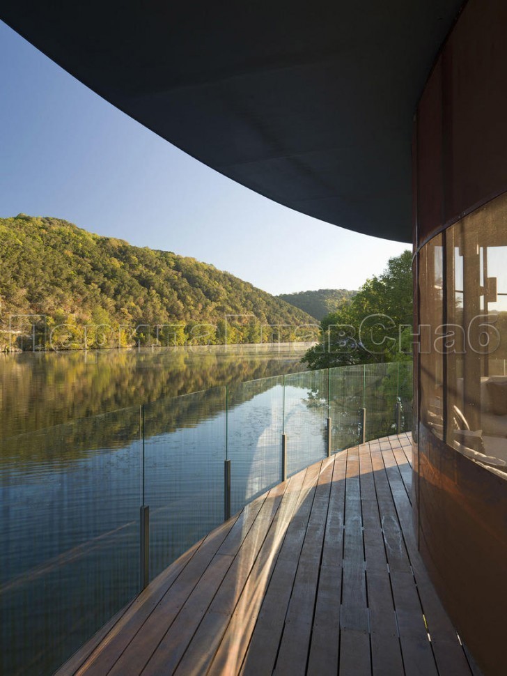 Ограждение с деревянным поручнем на выносе на точечном креплении
