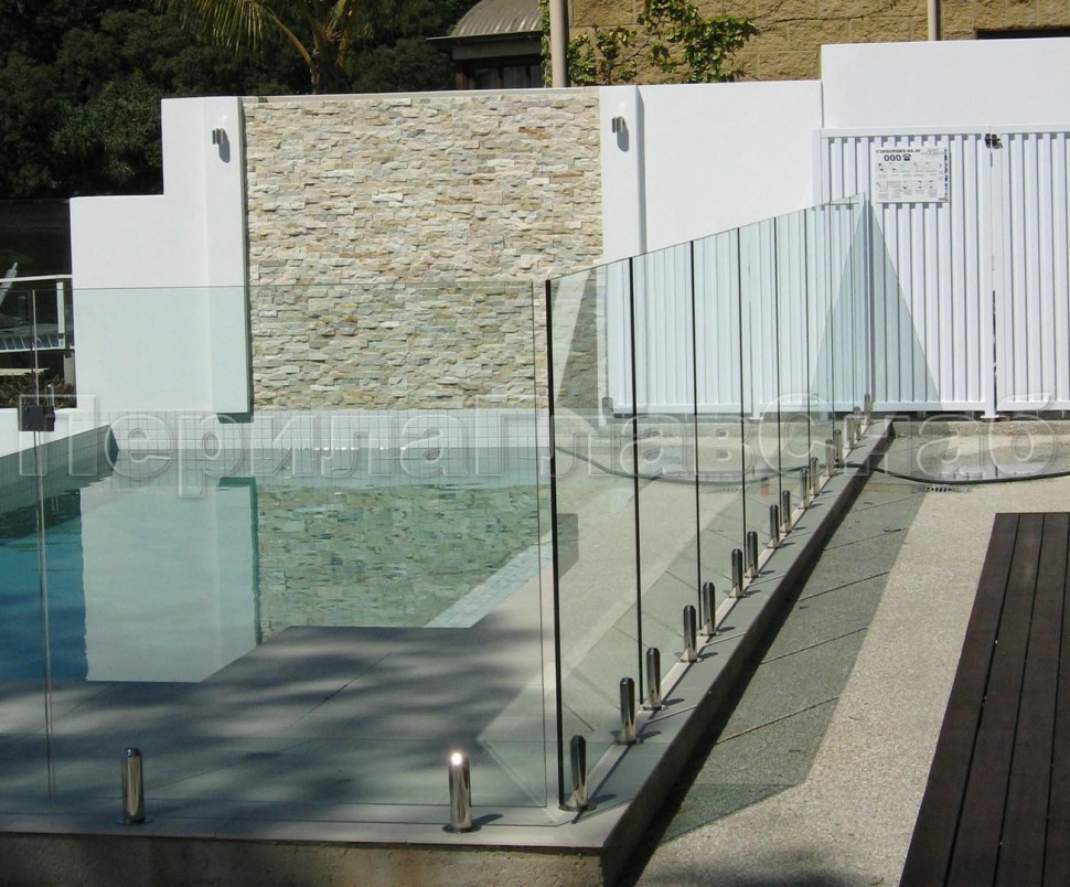 Ограждения лестницы без поручня с зажимными стеклодержателями и стойками