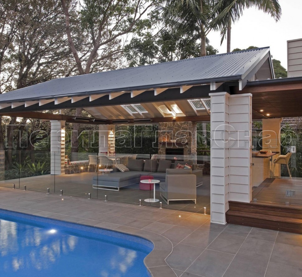 Ограждение кровли на несущем стекле и алюминиевом профиле