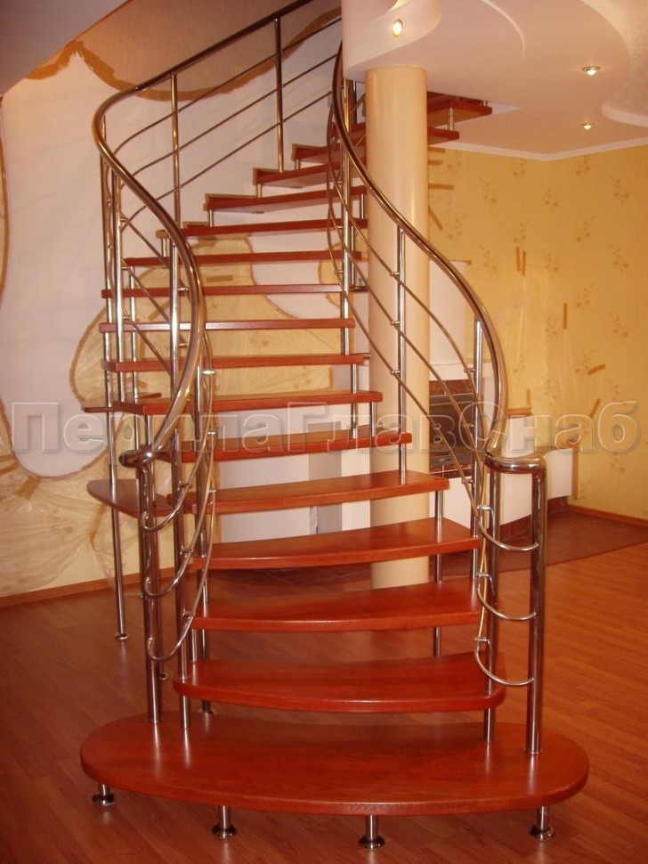 Ограждения со стойками в каждую ступень с круглым деревянным поручнем без ригелей