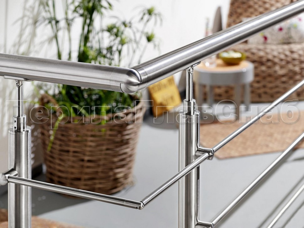 Три ригеля на держателях, круглый поручень и круглые стойки для крыльца