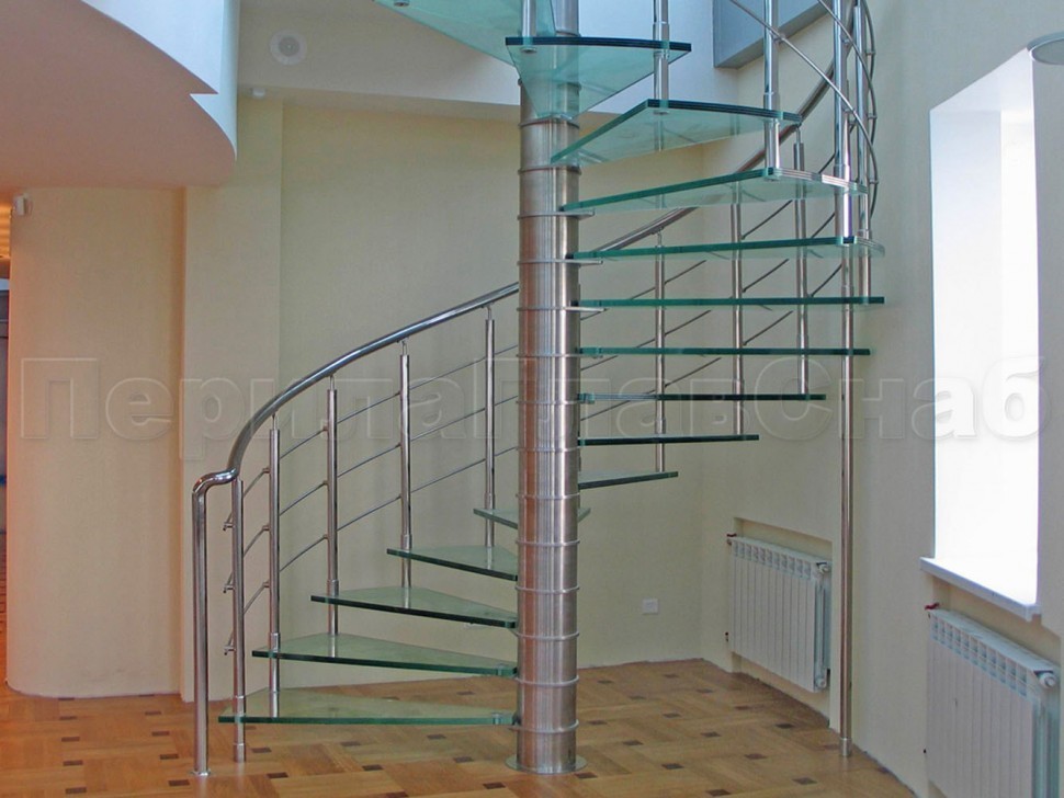 Стеклянные ограждения винтовой лестницы и баллюстрады