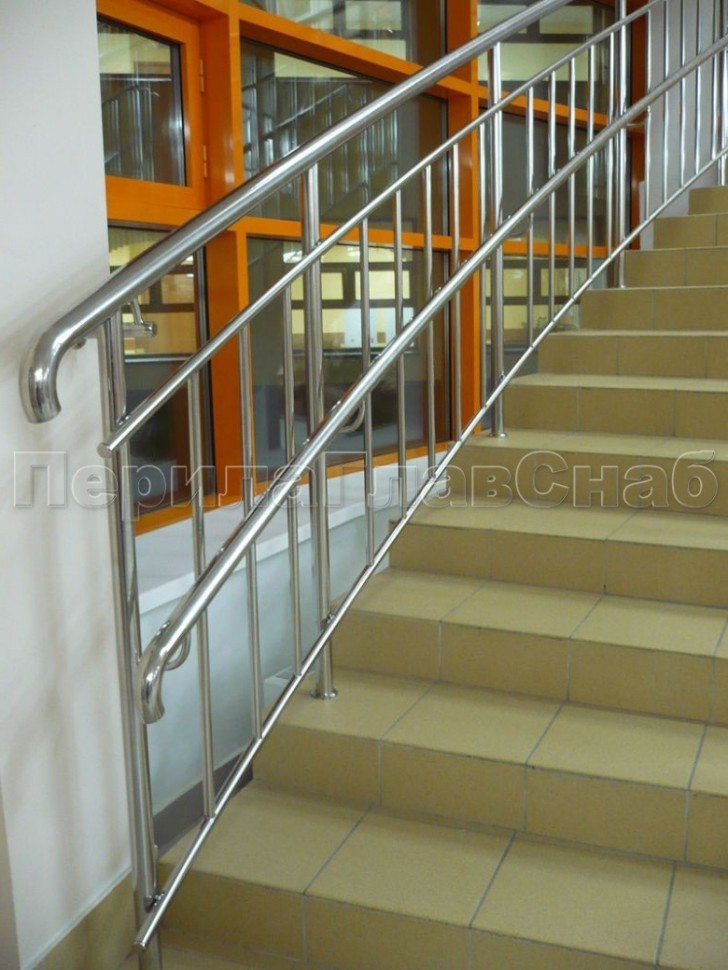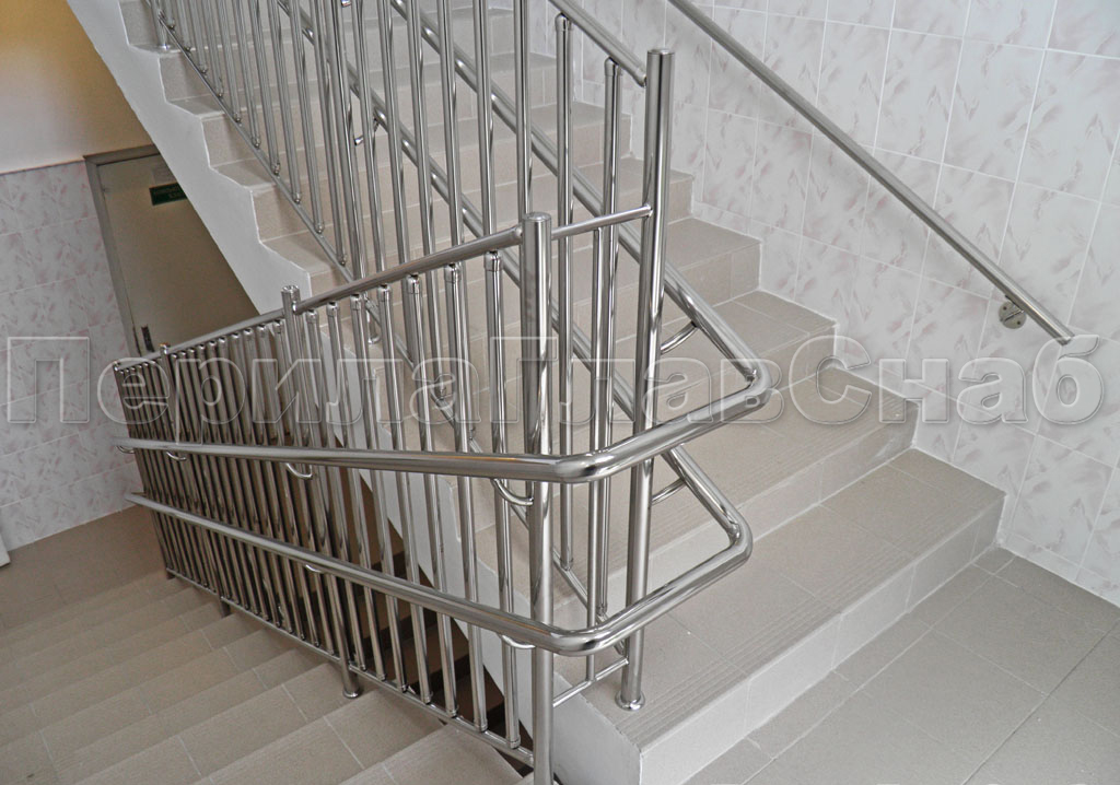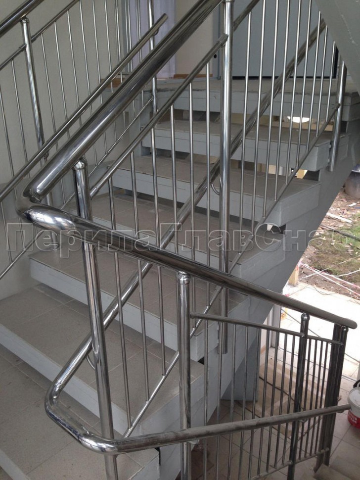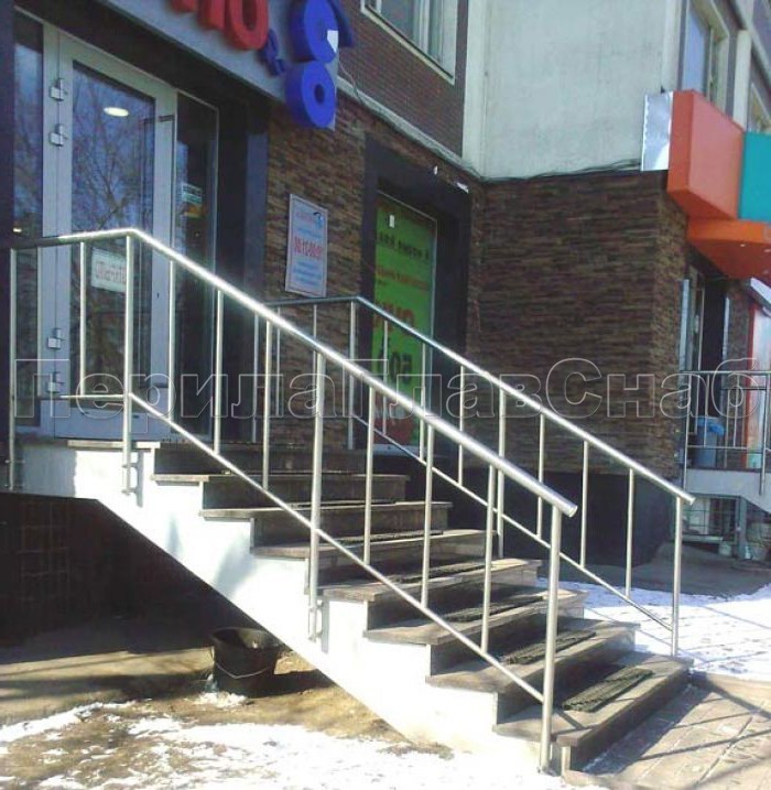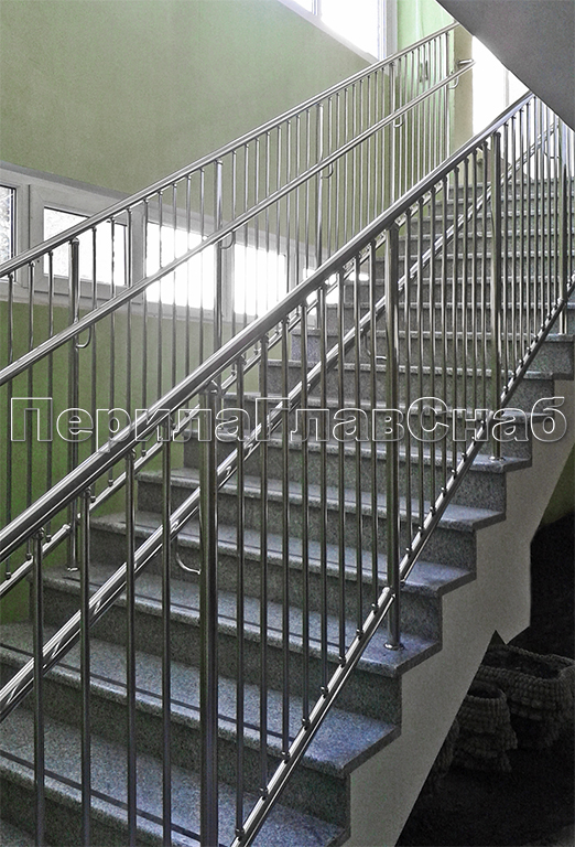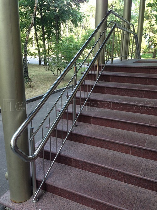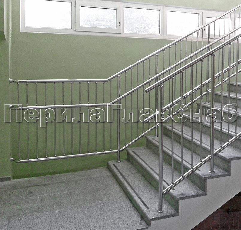 Записаться на встречу Нержавеющие ограждения для школ и детских садов с вертикальным заполнением “Частокол” - вариант №1 для крыльца