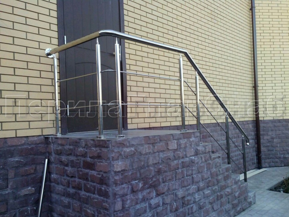 Четыре ригеля на сварке, круглый поручень и круглые стойки для крыльца