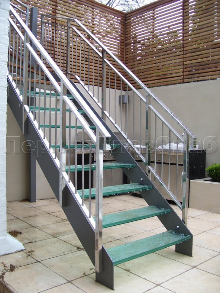 Ограждение для лестницы из нержавейки с зажимными стеклодержателями для крыльца