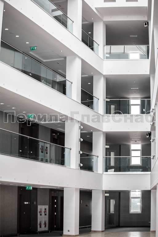 Стеклянные перила атриума. Атриум эллиптической формы.