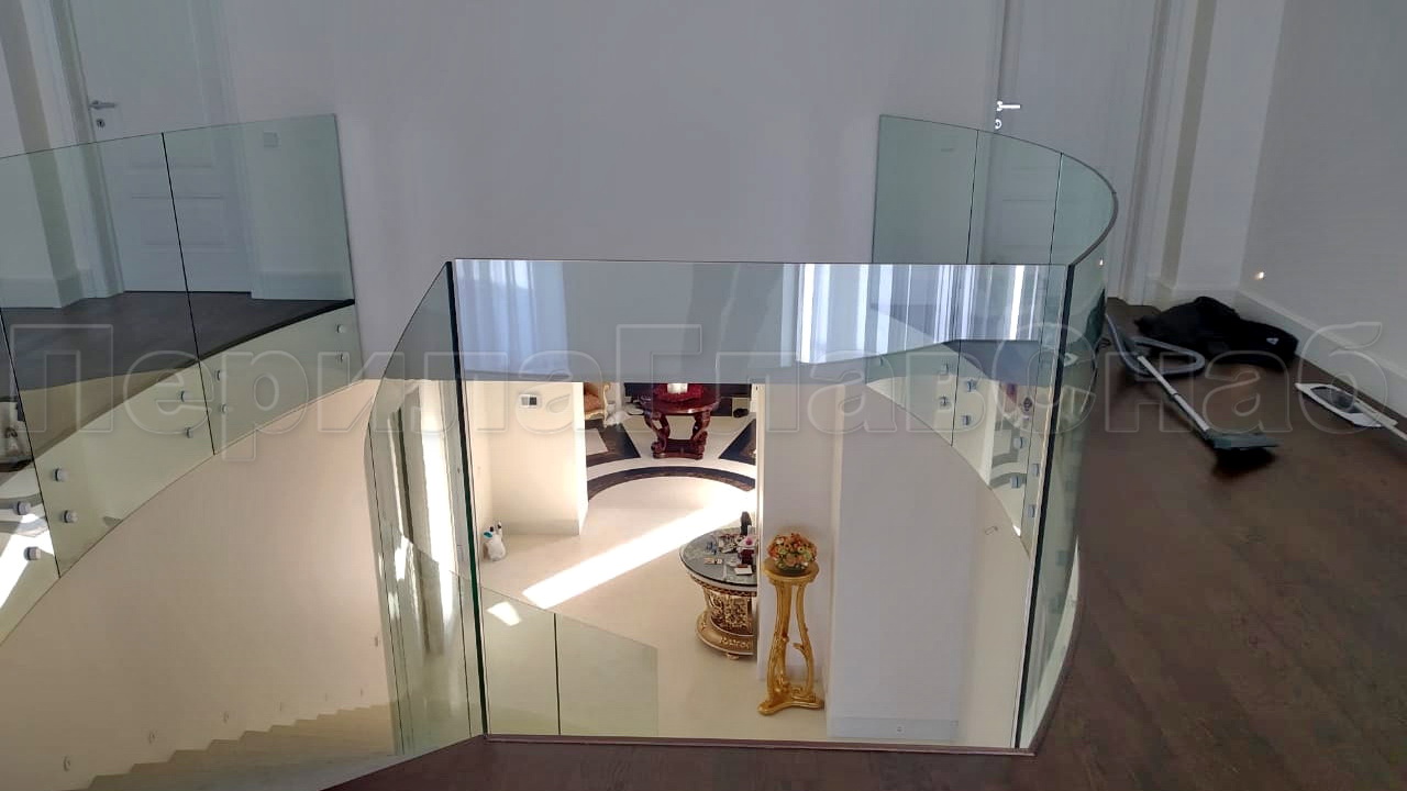 Стеклянные перила атриума в частном загородном доме, Подмосковье.