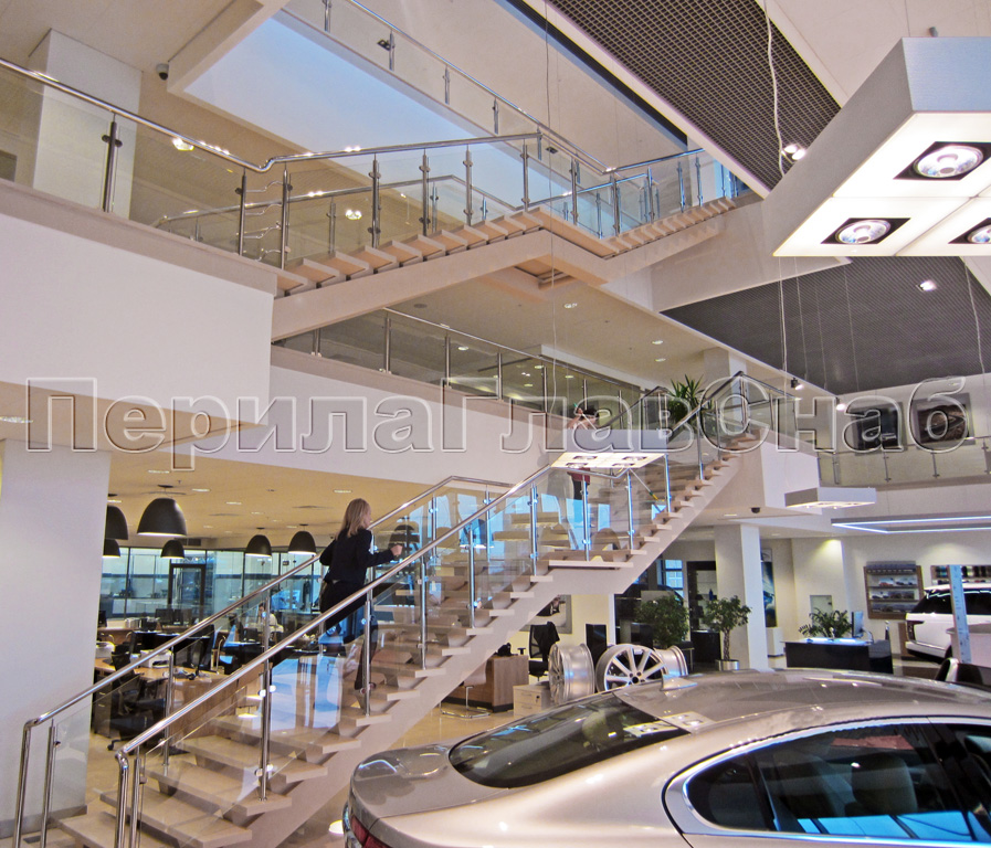 Стеклянные перила для атриума в двухэтажном брендовом бутике.