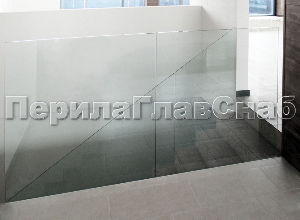 Ограждение с профильным поручнем с пазом на точечном креплении на лестнице