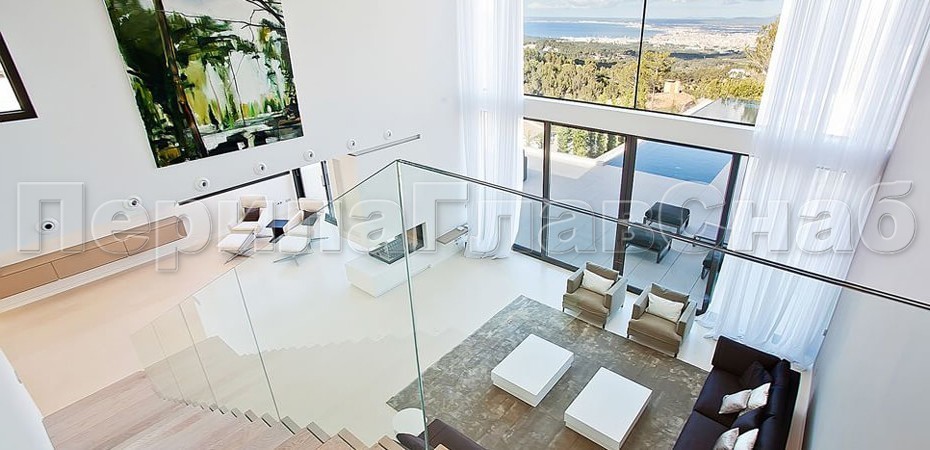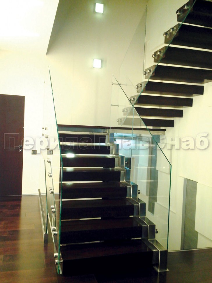 Ограждение с поручнем на выносе на точечном креплении на лестнице