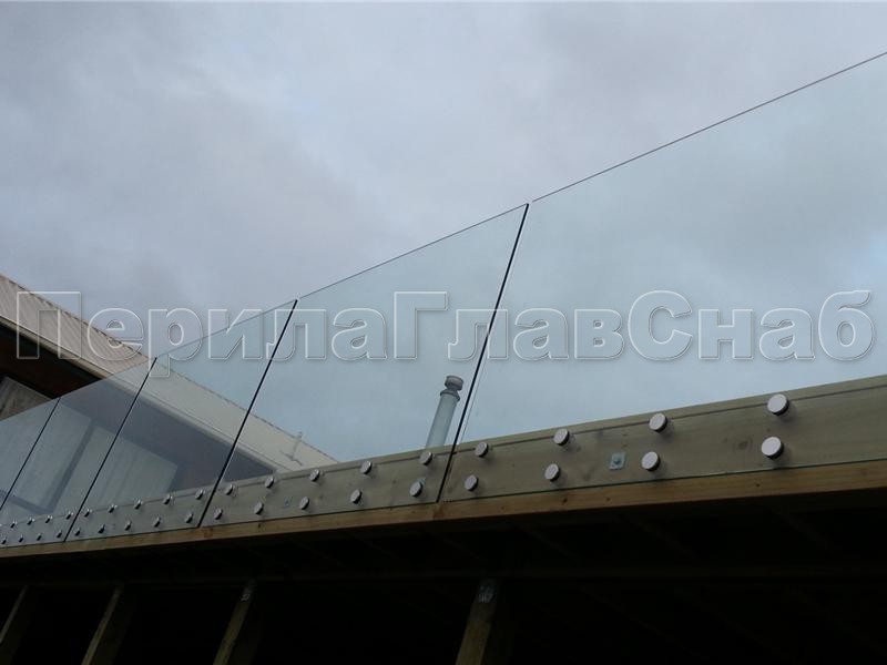 Несущая функция перераспределена между стеклом и стойками крепления. Высота ограждения может быть разной, в зависимости от высотности здания и наличия парапета (и его высоты).