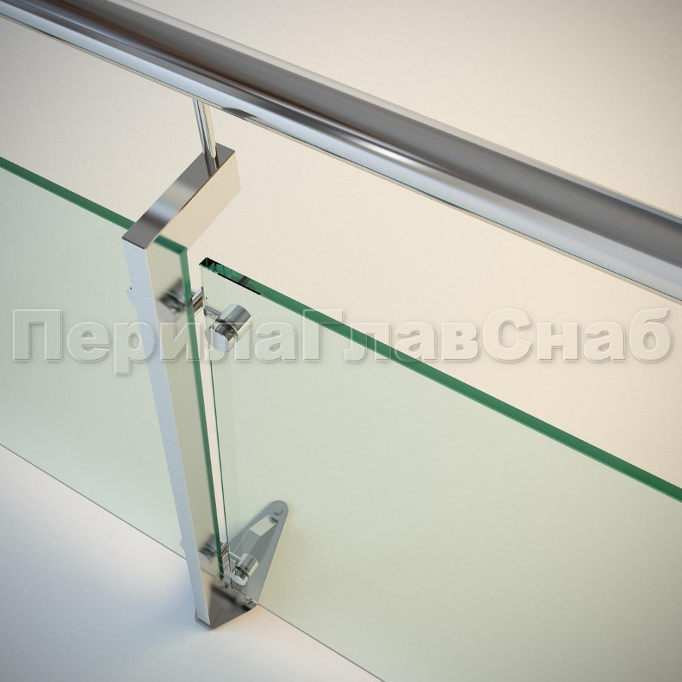 Ограждения для лестницы с поручнем на выносе с зажимными стеклодержателями и квадратными стойками
