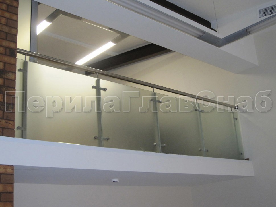 Красивая опция - частичная матировка нижней части несущего стекла. Делают обычно там, где стекло примыкает к лестничному маршу или перекрытию.