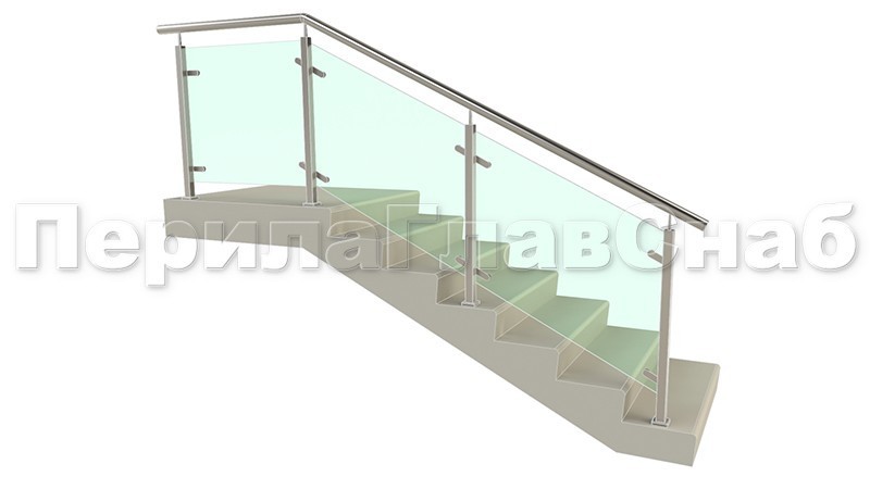 Ограждение лестницы с квадратными стойками и пластинчатыми стеклодержателями