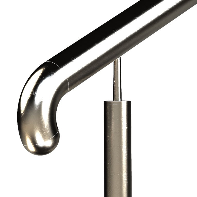 Если сделать отвод поручня в пол, то этим мы получим дополнительное усиление конструкции.