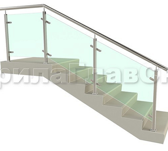 Ограждения лестницы без поручня с зажимными стеклодержателями и стойками